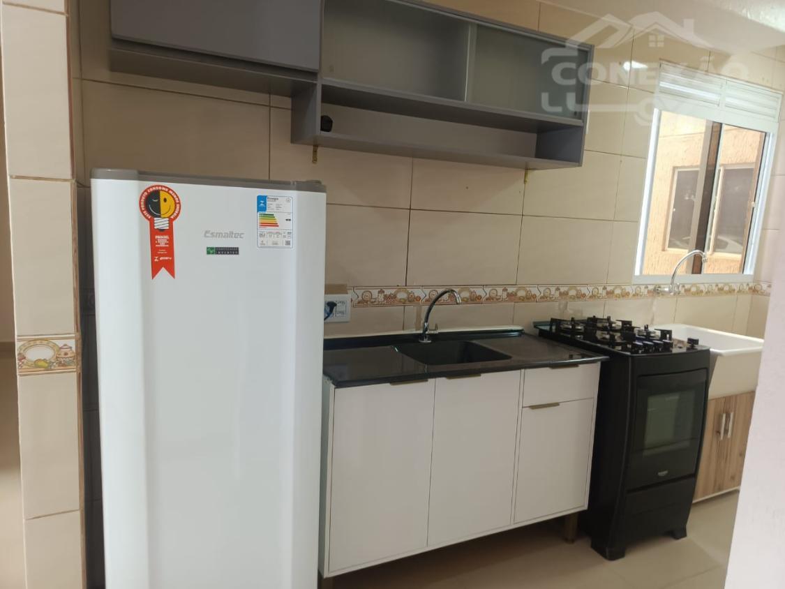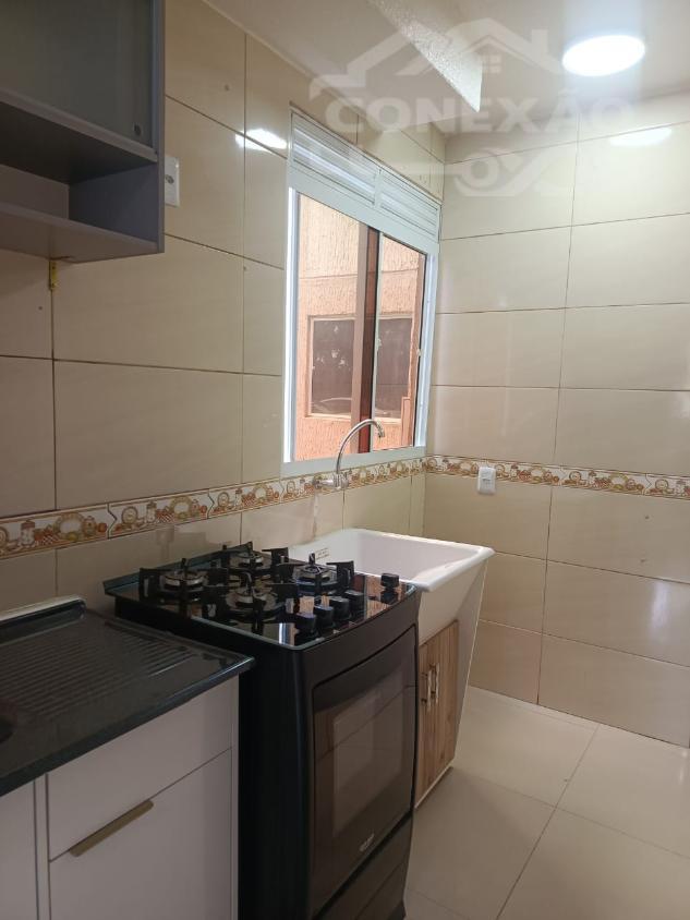 - Ambientes: Living integrado (sala de estar e jantar), cozinha prática e área de serviço conjugada.
