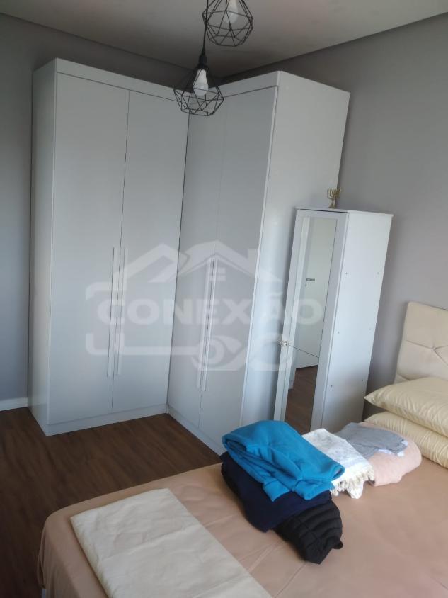Piso laminado no dormitório e porcelanato nas demais áreas;